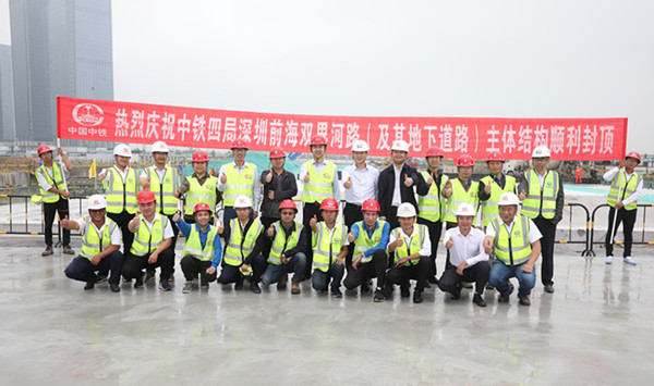 自项目开工以来,建设单位前海控股公司统筹组织深圳地铁集团枢纽分公司、中国中铁南方公司、深圳地铁工程咨询有限公司及中铁四局等单位精心筹划、科学施工,成功解决了近距离上跨地铁营运线、深大基坑、地下水丰富等技术难题,在2018年4月电塔拆除后,积极协助施工单位解决土方外运受限、原材紧张等不利因素,利用8个月时间先后完成了电塔区域内围护结构、支撑体系、土方开挖、地基处理、下层匝道等工程施工,并于12月7日顺利实现主体结构封顶,较原计划工期节点大为提前。