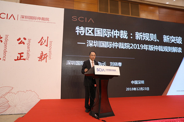 深圳国际仲裁院院长刘晓春现场解读了新的仲裁规则。新的仲裁规则主要有四大亮点:一是坚持当事人中心主义,进一步增强当事人意思自治;二是促进和保障诚信合作;三是立足中国国情,借鉴国际惯例,回应市场需要,在中国首次探索“选择性复裁机制”,制定了《深圳国际仲裁院选择性复裁程序指引》;四是加强多元化、专业化、高效率和低成本措施。
