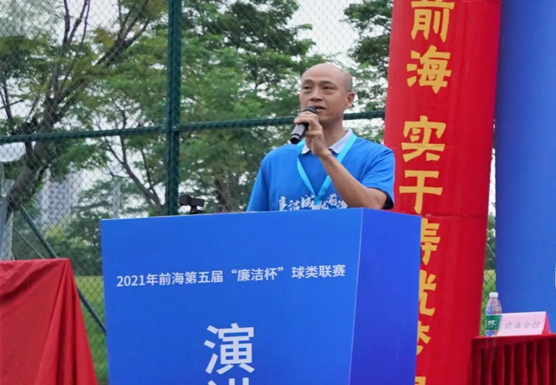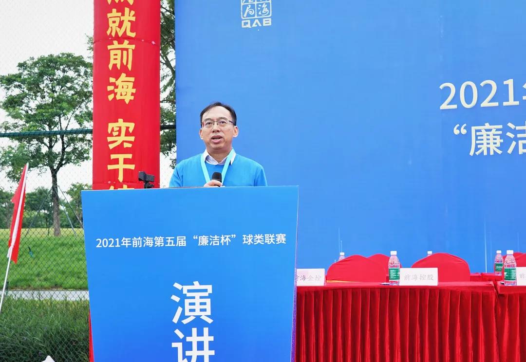 集团党委书记、董事长郭军在开幕式上致辞。他表示,前海控股成立十年来,始终把廉洁建设摆在工作首位,公司上下众志成城、埋头苦干,打造了前海国际会议中心、前海石公园、前海展示厅等一批重大项目,以实际行动接受了党和国家领导人视察检阅,有力推动了前海国际化城市新中心建设。前海合作区纪工委、廉政监督局高度重视、精心指导局属企业廉政建设,带领我们培育形成“廉洁杯”这个“金字招牌”,促进前海廉洁共建、文化共融。自2017年起,“廉洁杯”球类联赛已伴随我们走过5个年头,累计吸引上百家驻区参建单位、2000多名前海建设者参与其中。通过这个健康、阳光的赛事运动,拉近兄弟单位之“亲”,增强工作作风之“清”,构建和谐“亲、清”关系,共同为前海开发建设贡献力量。