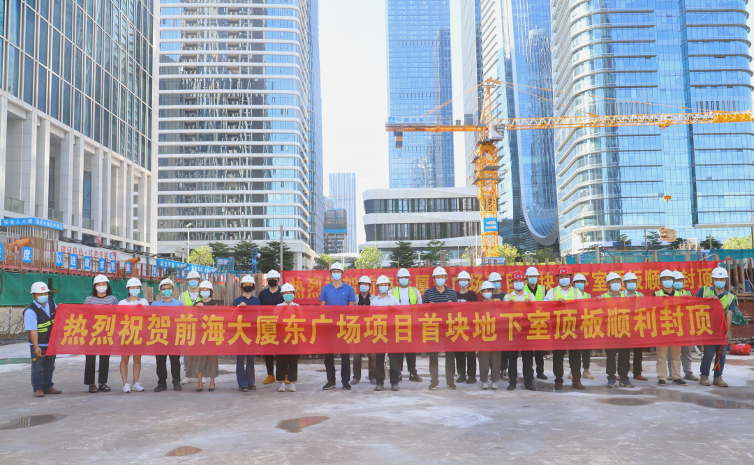 6月23日,前海大厦东广场项目首块地下室顶板顺利完成封顶,标志着项目建设取得重要的阶段性成果。